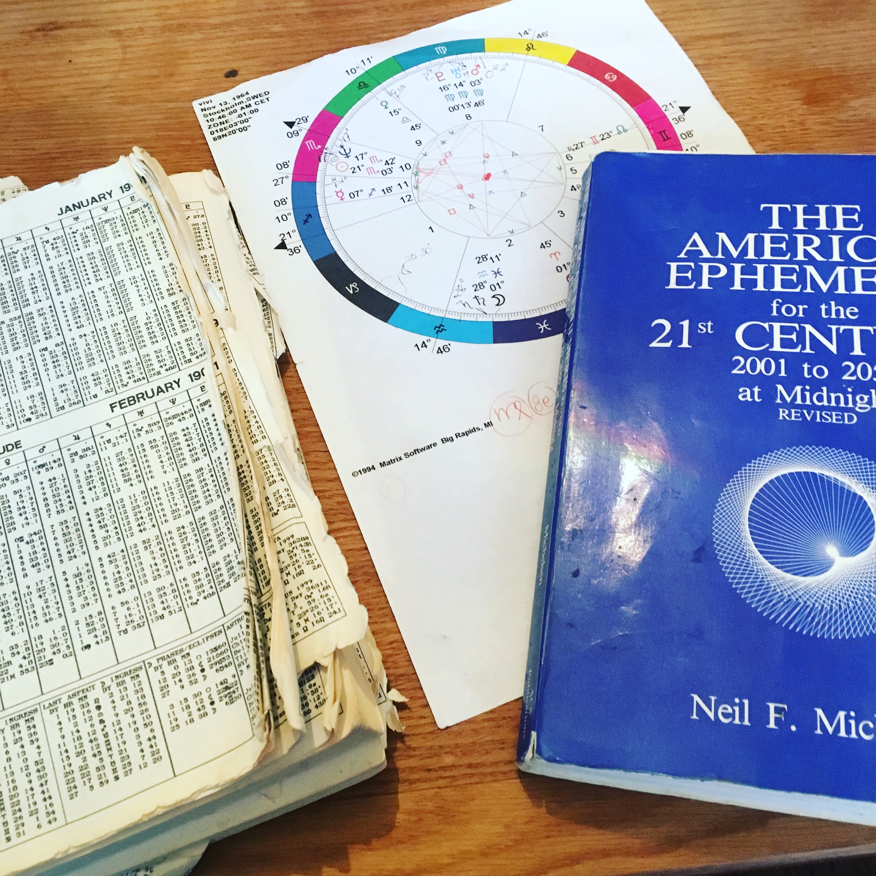 Idag kollar jag mitt horoskop. Det har jag inte gjort på flera år. 1900-talets efemeridtabell är helt sönder läst. ?ska bli spännande att se vad jag står i ur astroperspektiv, blir annars mest att kolla läget med tarotkorten. Intressant när jag kollar några år bakåt och jag ser hur tydligt om helst att det som skedde var oundvikligt, det tackar jag för. Vilken underbar värld jag lever i, tack universum! I´m blessed