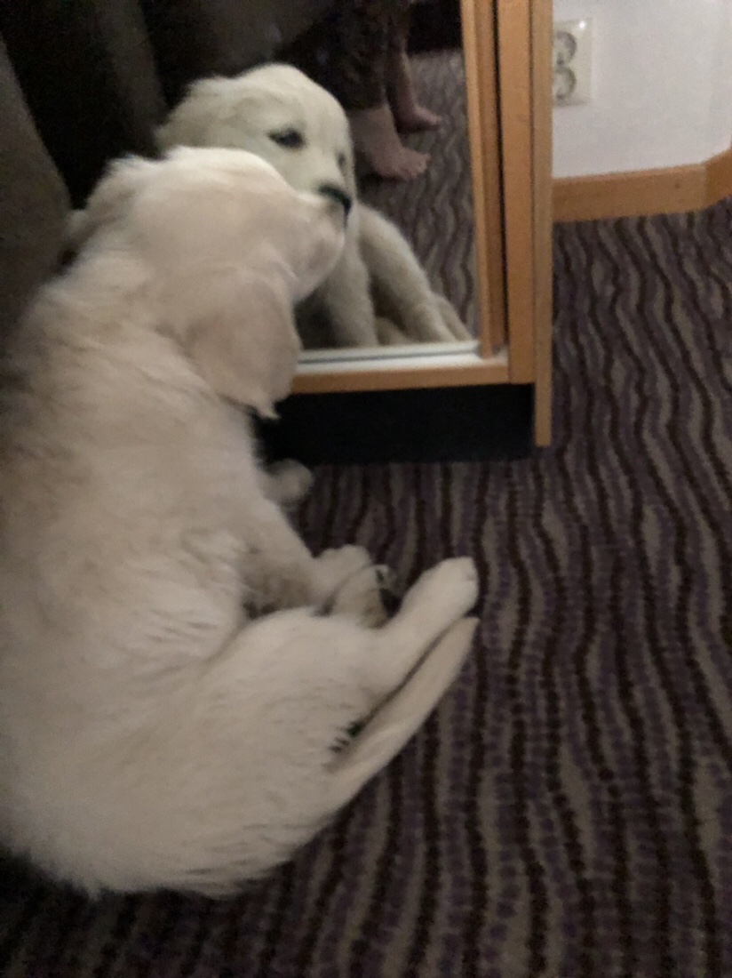 Medans matte var på mässa så hängde jag med husse. Han har ngn kompis här vars lada han lånar för att fixa med sin Camaro som tydligen kom med båt från USA i fredags. Medans husse var upptagen med det så hittade jag lite bus. Jag passade på att lösa ett världsproblem…..när någon har slängt ett 12-pack korvbröd på backen och man sitter fast i ett koppel utanför en lada vad gör man då? Jo, man gnager sönder sitt flexi såklart. Men min surkart till husse hann tyvärr se mig innan jag hann äta upp korvbröden. Men han fick i alla fall ett straff…..att laga flexit hihihi.