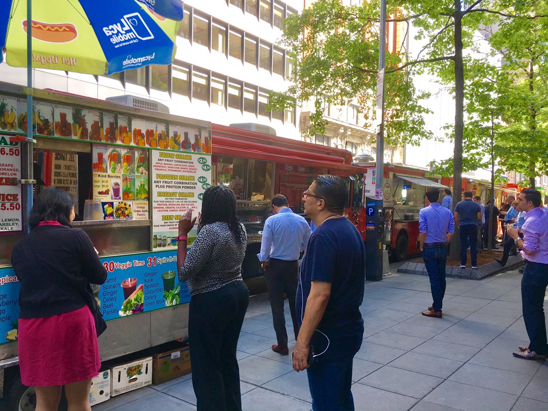 Jag älskar deras foodtrucks. Här köar folk för lunch för olika typer av mat. Mer sånt hemma om jag fick välja.