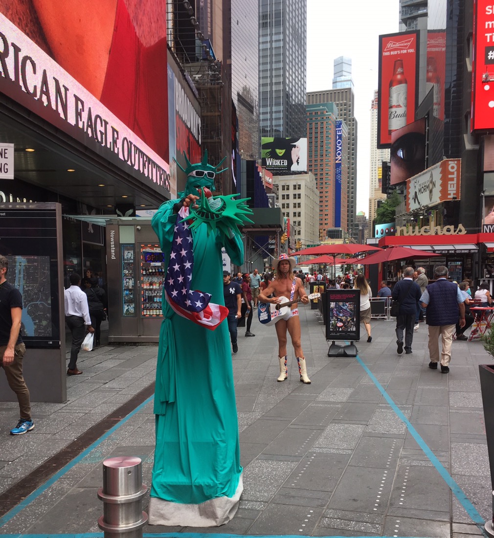 Times Square igen. Frihetsgudinnan och den nakna cowboyen som hänger där jämt