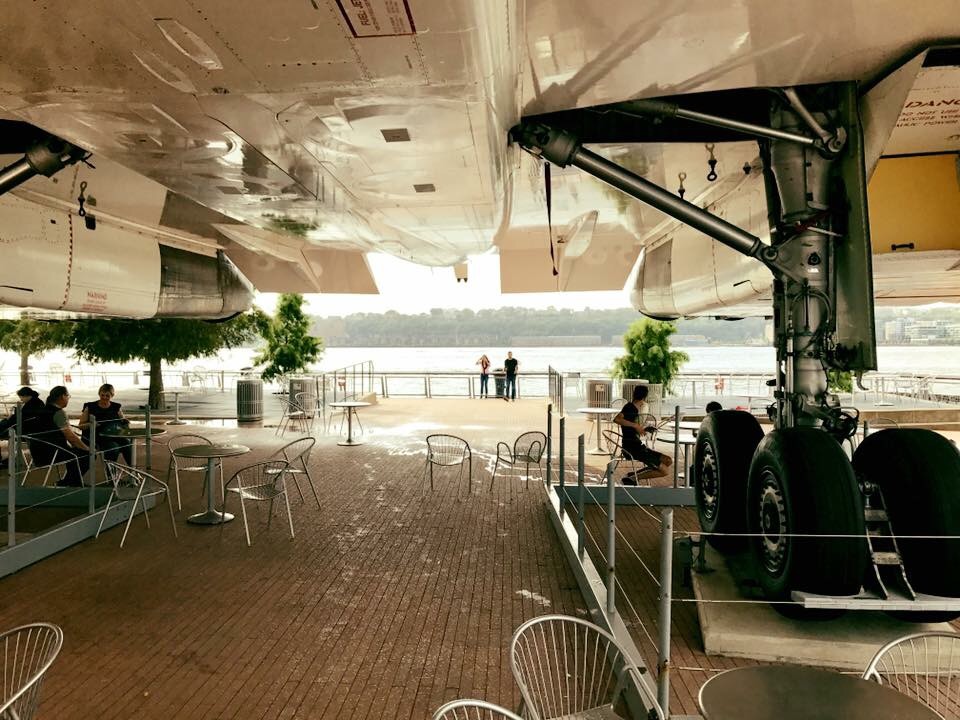 Sen började det överraskande regna. Jag hade tagit med paraplyer till New York men då väderleksrapporten visade på 0 procent regn så fick de stanna på hotellet grrrr. Vi tog skydd under en concord, rätt coolt ändå…