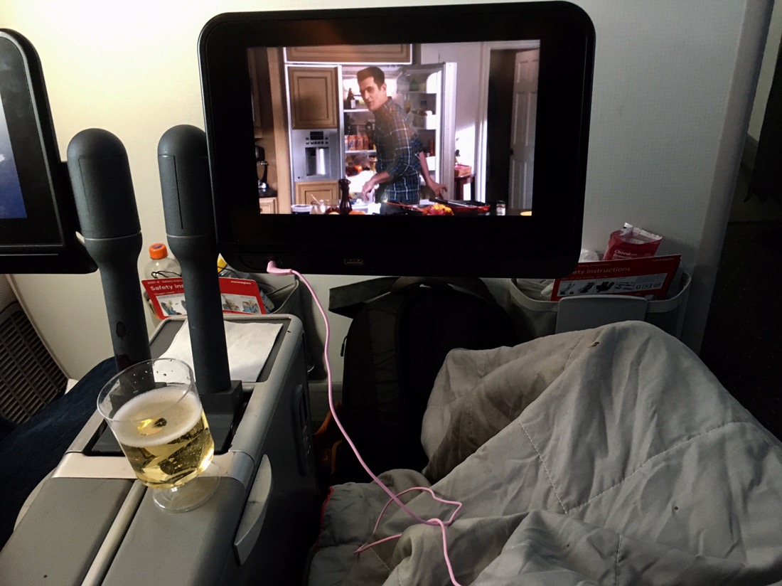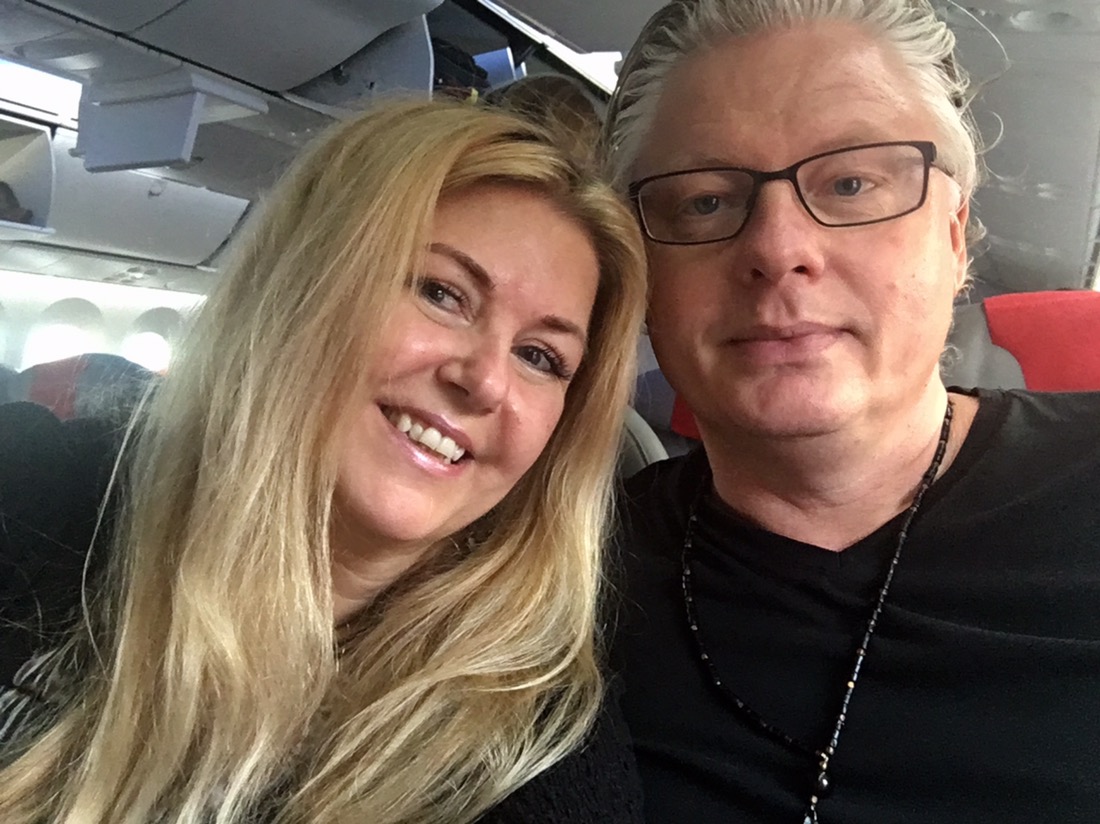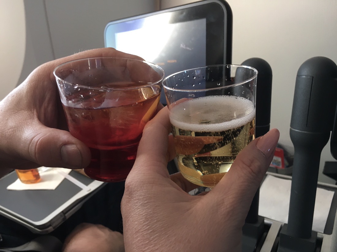 Eftersom Anders är 2,08 lång så unnade vi oss att åka premium så att även han fick plats, det blev lite extra av allt kan man säga, inte bara av honom. Att kunna beställa gratis drinkar från en pekskärm känns kul även om jag inte gillar att festa till på flygresan (längre), man får liksom lust att ställa till med fest bara för att man kan hahaha. Lyssnar eller läser hellre en god bok eller kollar film. Skönt iaf att få lite extra plats när man måste ställa om kroppen 6 timmar, vi liksom backade till NY haha