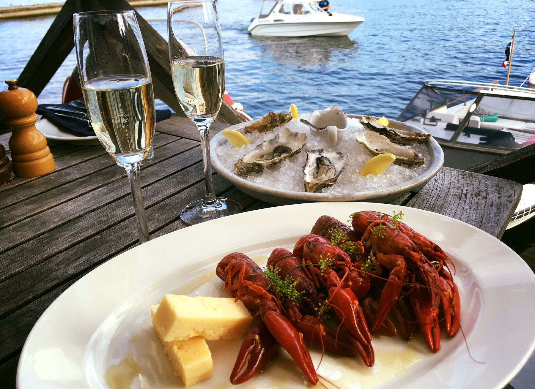 Lördagen gick på lite impuls. Vi hade helt enkelt inte lusta att sitta hemma och häcka så vi tog båten över till Fjäderholmarna  ❤️ Vi klämde i oss både champagne, svenska kräftor och ostron. Ljuvligt. När vi sen satte oss vid öppna spisen för att vänta in båten tillbaks så dök vår kompis Annelie upp som vi inte träffat på ett tag, så himla kul.