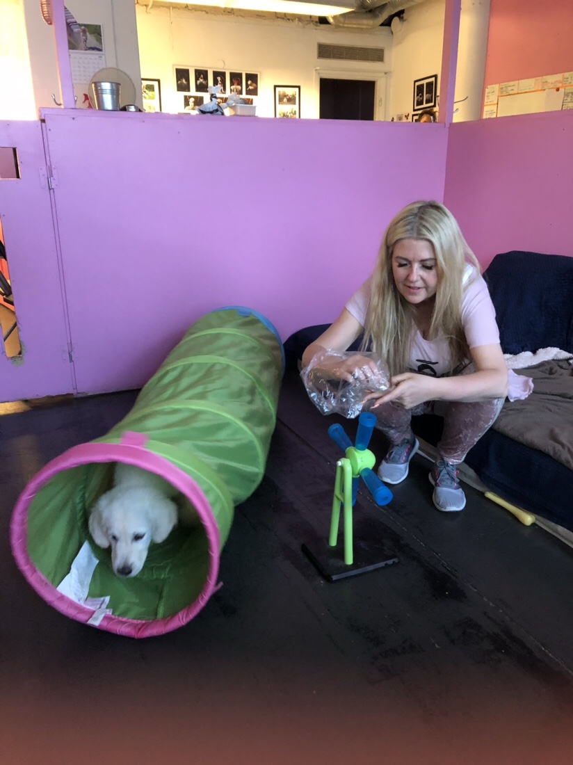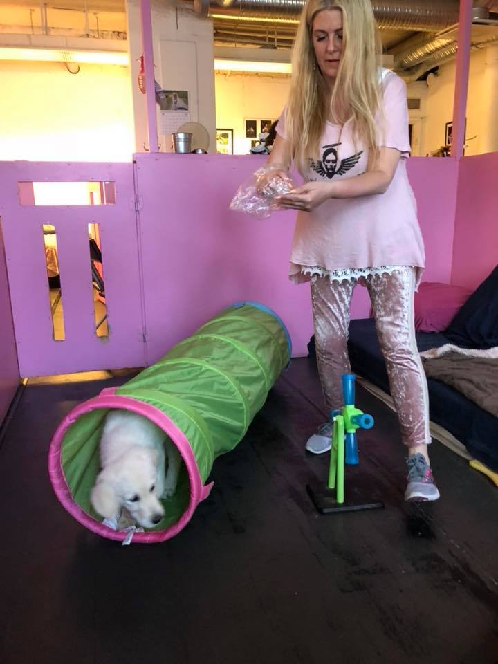 Avslutning på valpkursen. Blev stolt som en tupp när vår ena hundinstruktör ville ha kontaktuppgifterna till Lizzys uppfödare, de är imponerade av henne. Den andra ville ta med sig henne hem, hon brukar alltid gosa med Lizzy. I går gjorde vi en övning i olika bås med objekt som kunde vara lite nya och läskiga för valparna. Lizzy var en orädd tjej som mest tyckte det var kul.  ❤️❤️❤️??