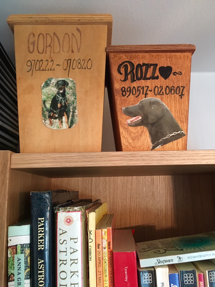 Mina älskade hundar står högst upp på min bokhylla